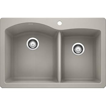 BLANCO, Concrete Gray 442749 DIAMOND SILGRANIT Drop-In or Undermount Kitchen Sink, 25″ X 22″
