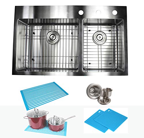 COMPLETE SOLUTION – To aid your kitchen tasks, the sink comes with a heavy duty silicone multipurpose dish rack to air-dry your kitchenware, deluxe lift-out basket strainer to help collecting food waste, and a matching stainless steel protective bottom grid to protect the sink bowl