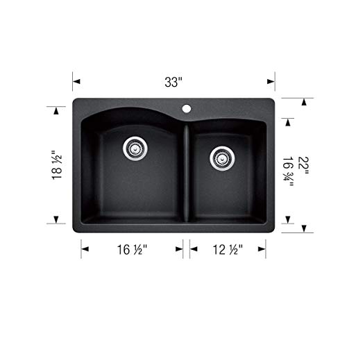 SINK DIMENSIONS 33″ L X 22″ W X 9 5″ D and designed to fit a minimum 33″ cabinet base