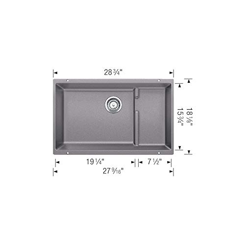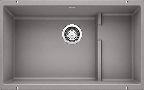 PRECIS CASCADE Undermount Granite Composite 29 in. Single Bowl Kitchen Sink with Mesh Colander in Metallic Gray