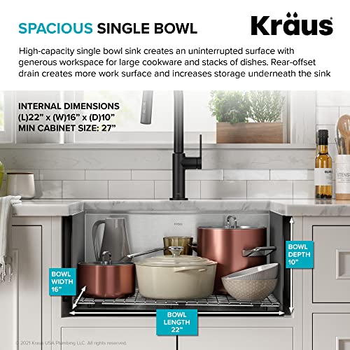 KRAUS Kore 24 Inch Farmhouse Apron Front Workstation 16 Gauge Stainless Steel Single Bowl Kitchen Sink with Accessories, KWF210-24