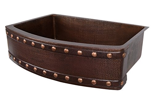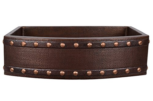 Premier Copper Products KASRDB30249BS 30-Inch Hammered Copper Kitchen Rounded Apron Single Basin Sink with Barrel Strap…