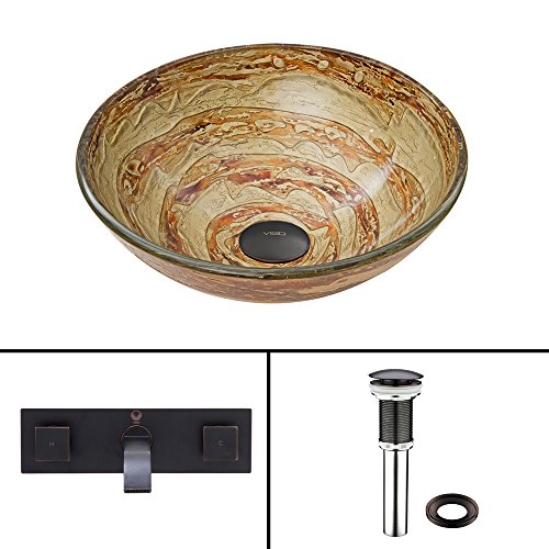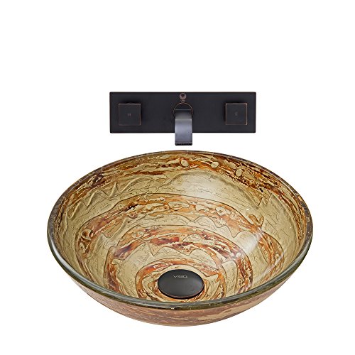 VIGO Mocha Swirl Glass Vessel Bathroom Sink and Titus Wall Mount Faucet with Pop Up, Antique Rubbed Bronze